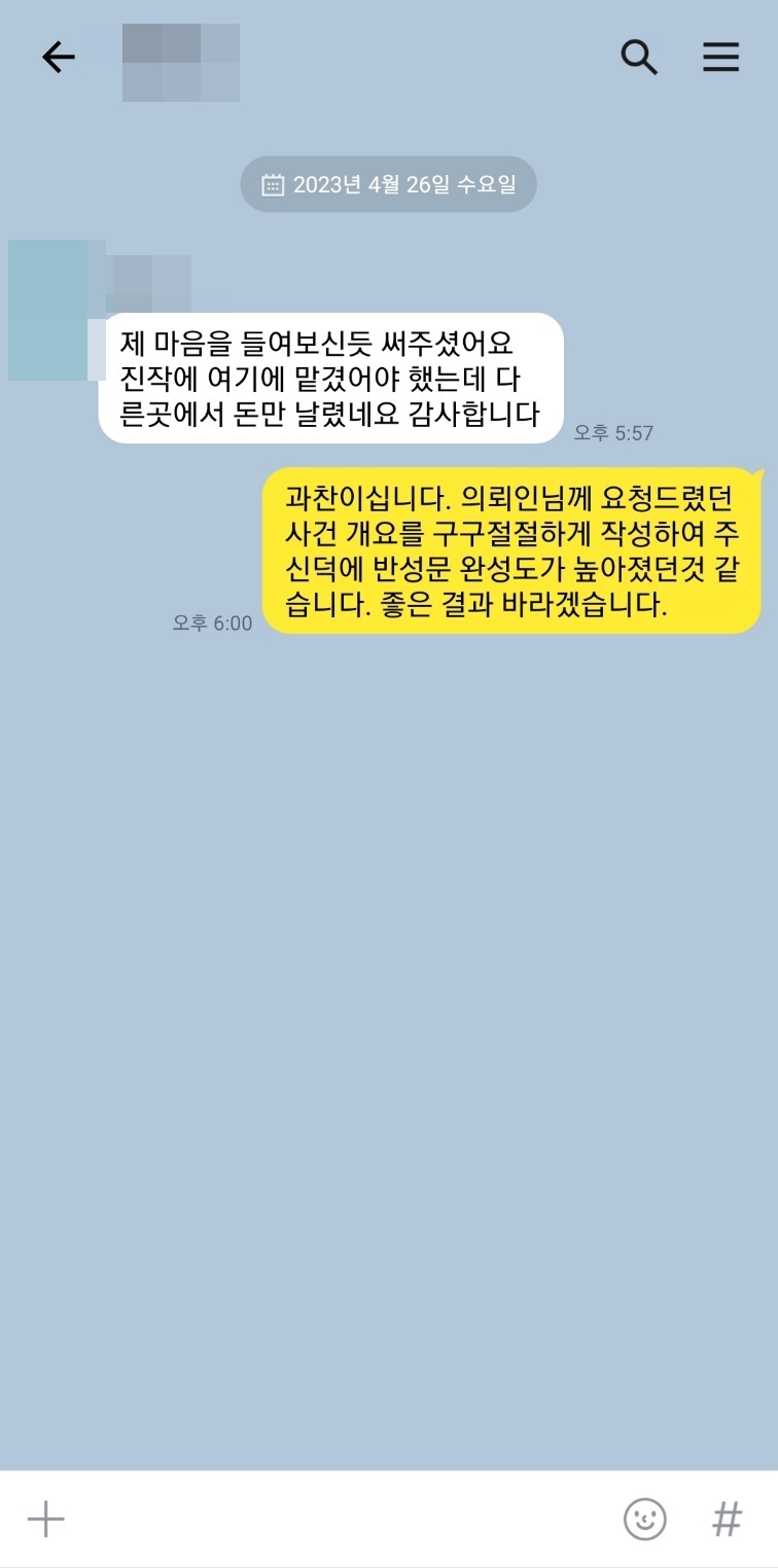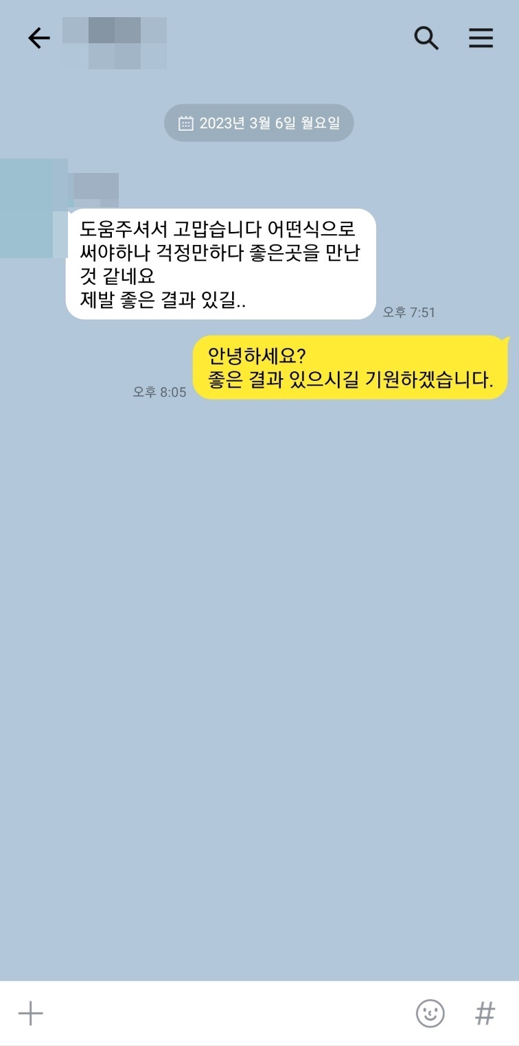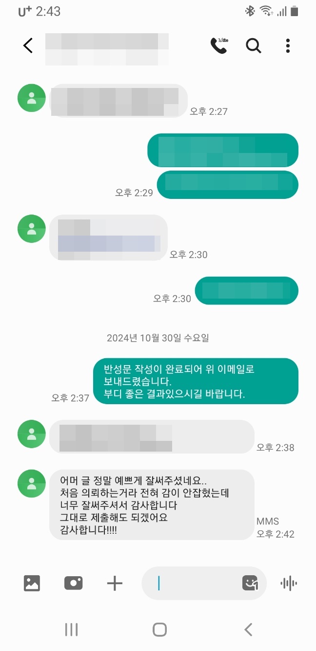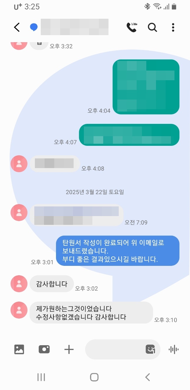 후기 의뢰 고객 후기 - 워드마스터 by wordmasterstudio 2023. 5. 19. 공유하기 게시글 관리 wordmasterstudio 저작자표시 비영리 변경금지 (새창열림) 사업자 정보 표시 포르투나 | 고재훈 | 서울 노원구 동일로 182길 10 | 사업자 등록번호 : 558-65-00304 | TEL : 010-5815-1891 | 통신판매신고번호 : 호 | 사이버몰의 이용약관 바로가기 '후기' 카테고리의 다른 글 결혼 축사 생생 리뷰 (0) 2024.07.04 관련글 결혼 축사 생생 리뷰