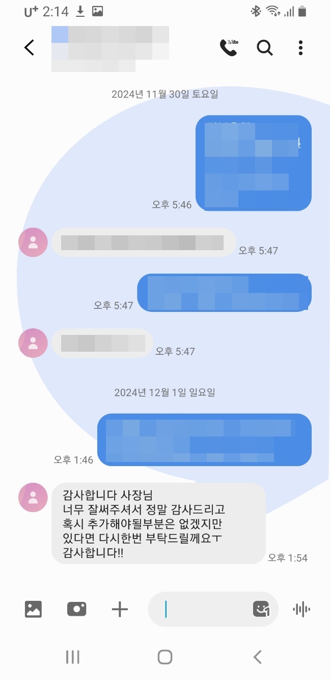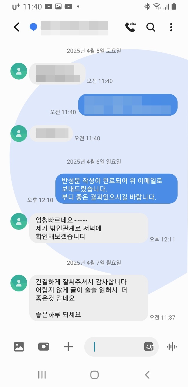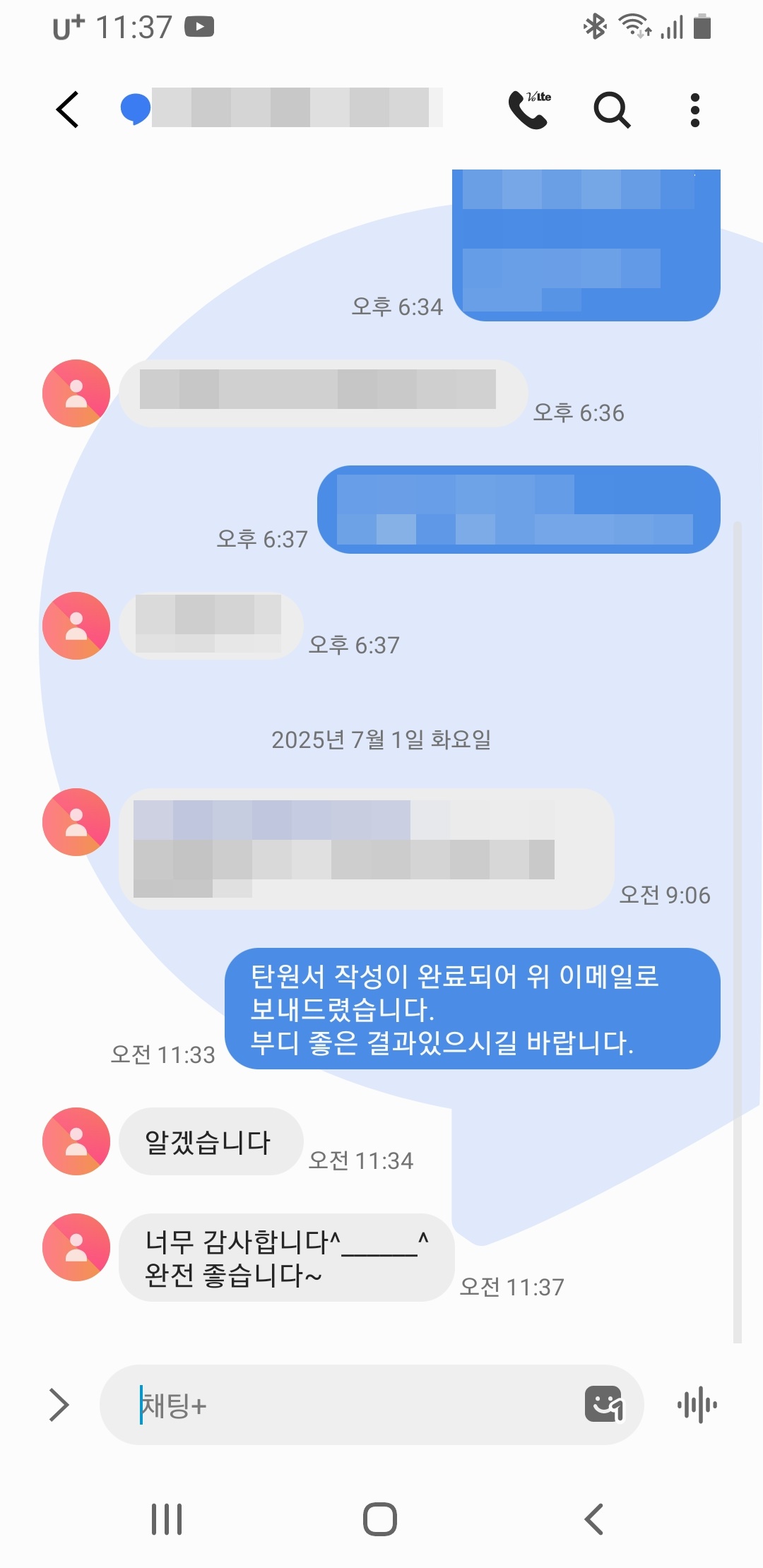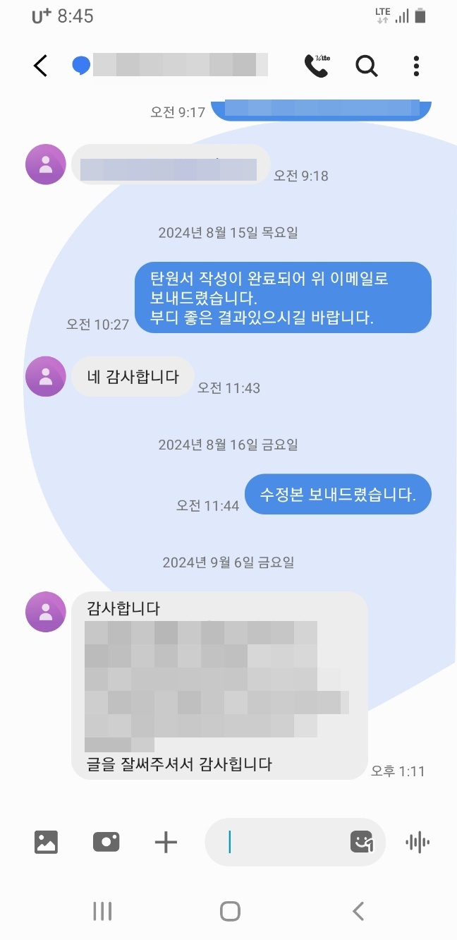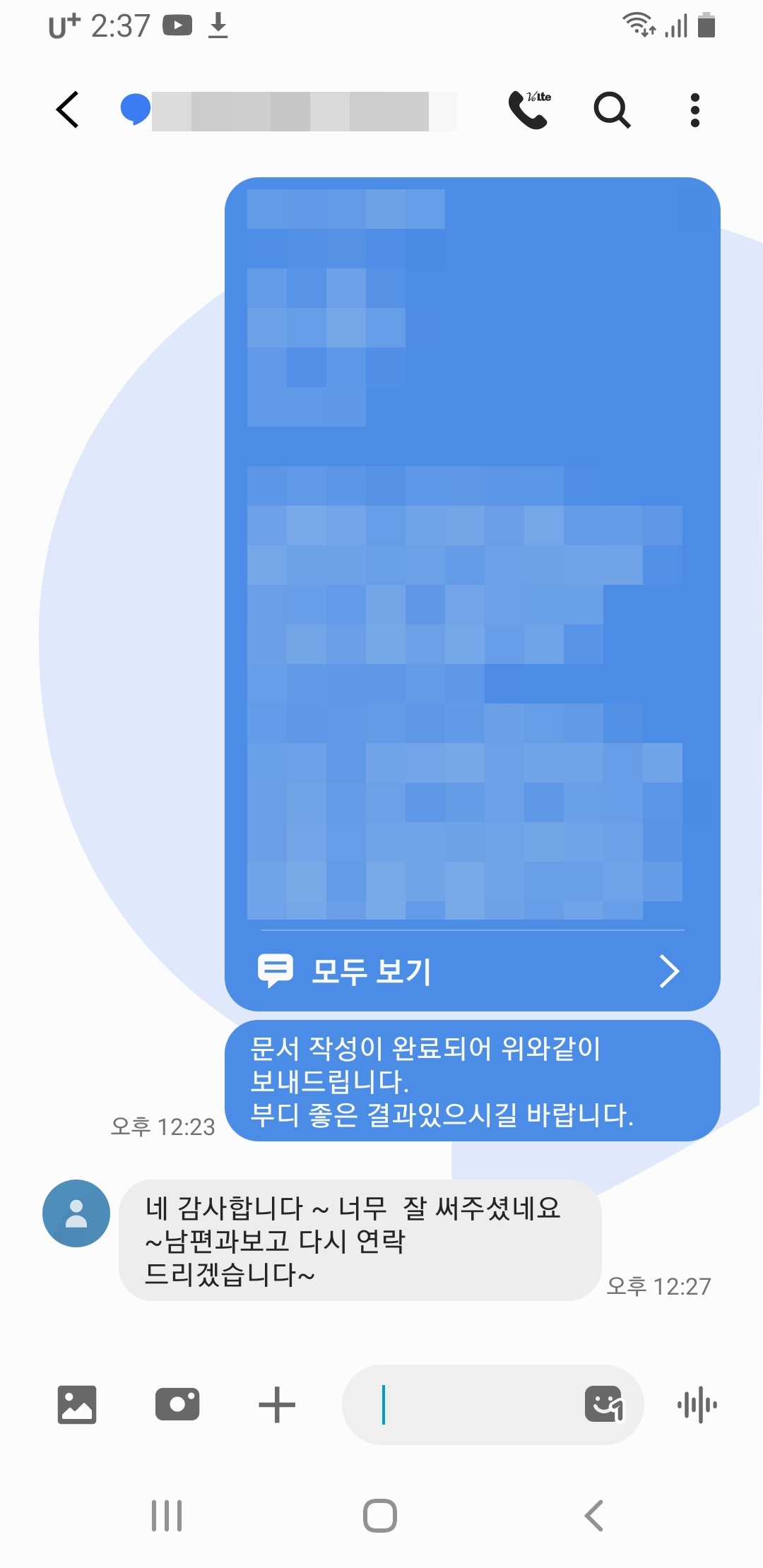 후기 의뢰 고객 후기 - 워드마스터 by wordmasterstudio 2023. 5. 19. 공유하기 게시글 관리 wordmasterstudio 저작자표시 비영리 변경금지 (새창열림) 사업자 정보 표시 포르투나 | 고재훈 | 서울 노원구 동일로 182길 10 | 사업자 등록번호 : 558-65-00304 | TEL : 010-5815-1891 | 통신판매신고번호 : 호 | 사이버몰의 이용약관 바로가기 '후기' 카테고리의 다른 글 결혼 축사 생생 리뷰 (0) 2024.07.04 관련글 결혼 축사 생생 리뷰