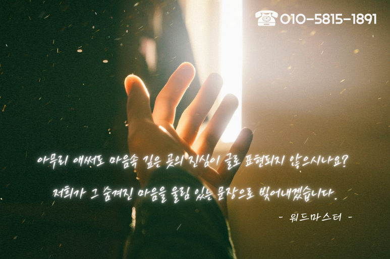 저는 단지 글을 대신 써드리는 역할을 넘어, 여러분이 스스로의 내면을 들여다볼 수 있도록 함께 걷고 싶습니다. 여러분의 이야기를 들려주실 때, 우리는 함께 마음의 깊은 곳을 탐색하게 됩니다. 그 과정에서 미처 알지 못했던 자신의 모습을 발견하고, 진실된 변화의 씨앗을 심게 될 것입니다.