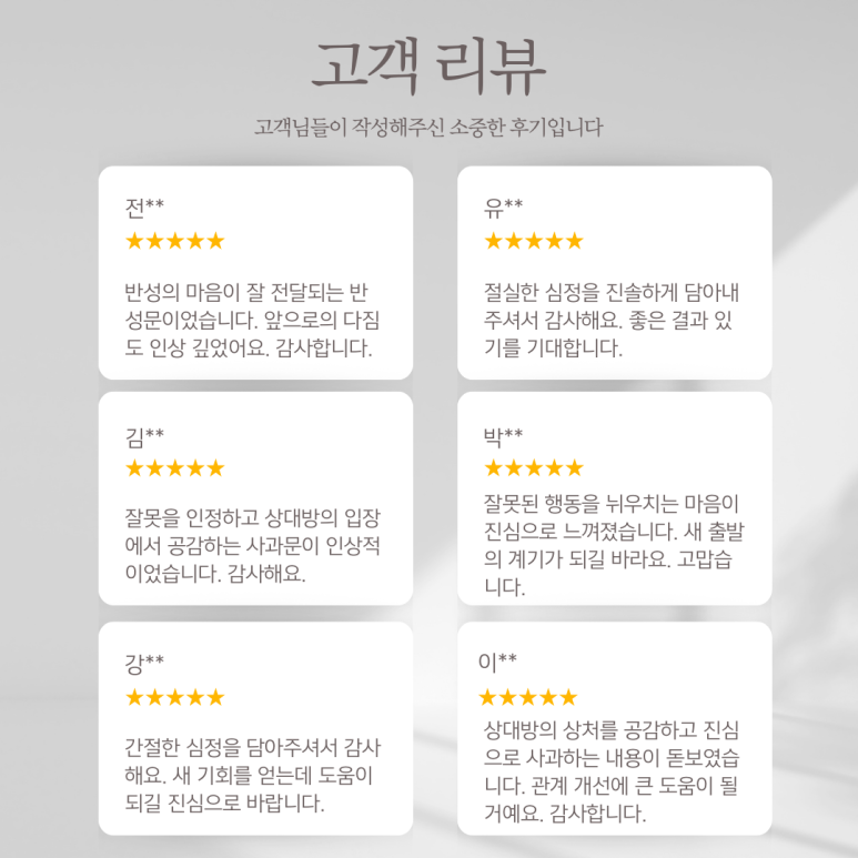 반성문을 써야 하는 어려운 상황에 계신 분들께 마음을 전합니다.
